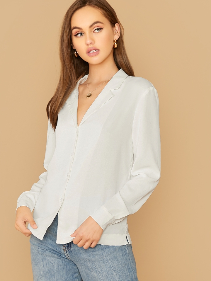 Camisa unicolor de cuello notched ropa de trabajo
