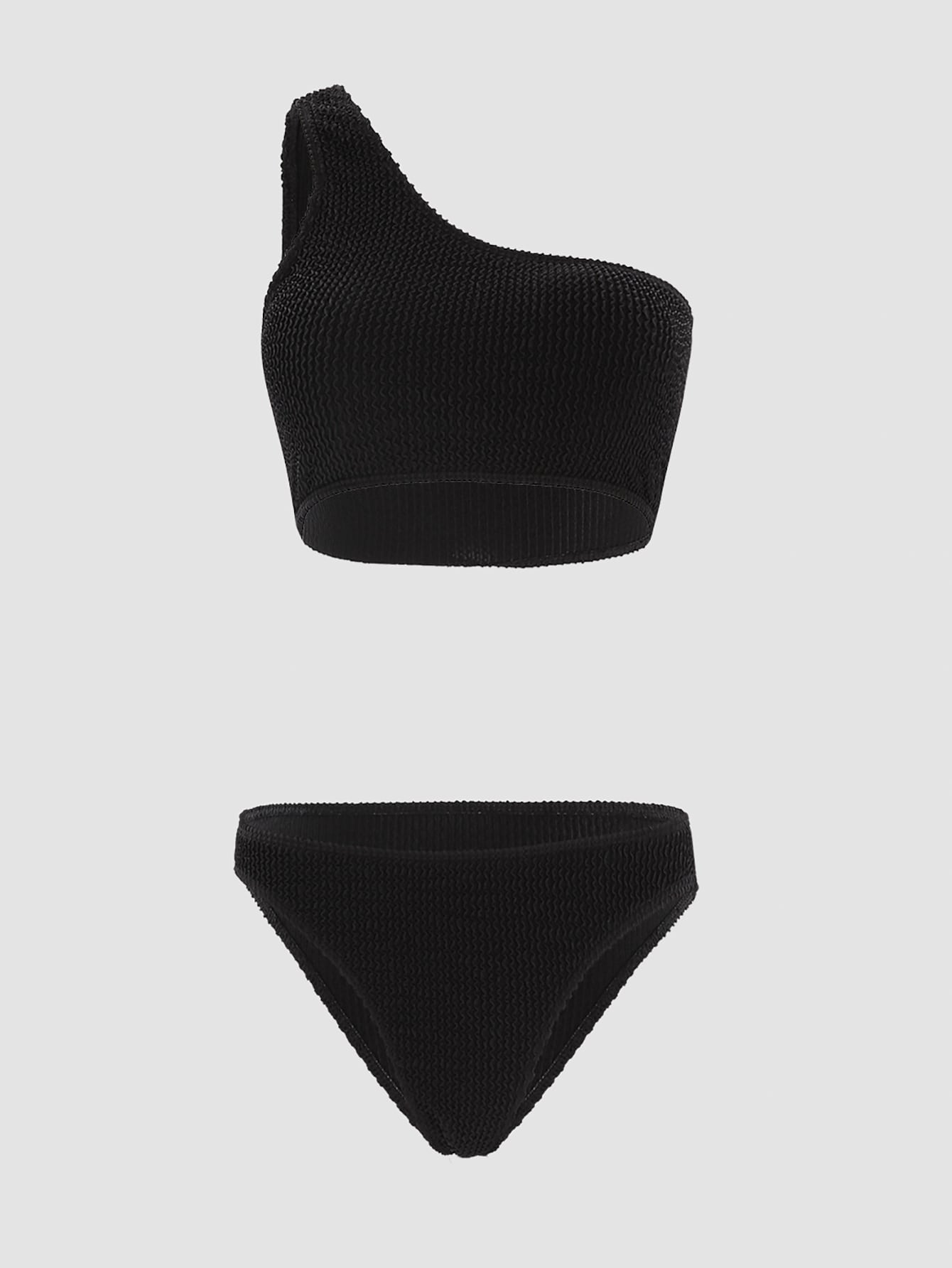 Conjunto de Bikini de playa de verano sólido con textura de un hombro
