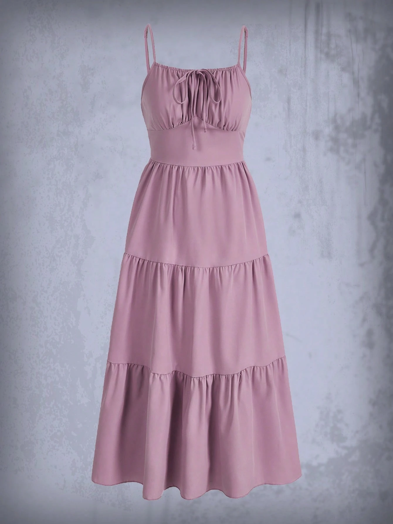 Vestido de tirantes unicolor pecho con fruncido bajo con fruncido