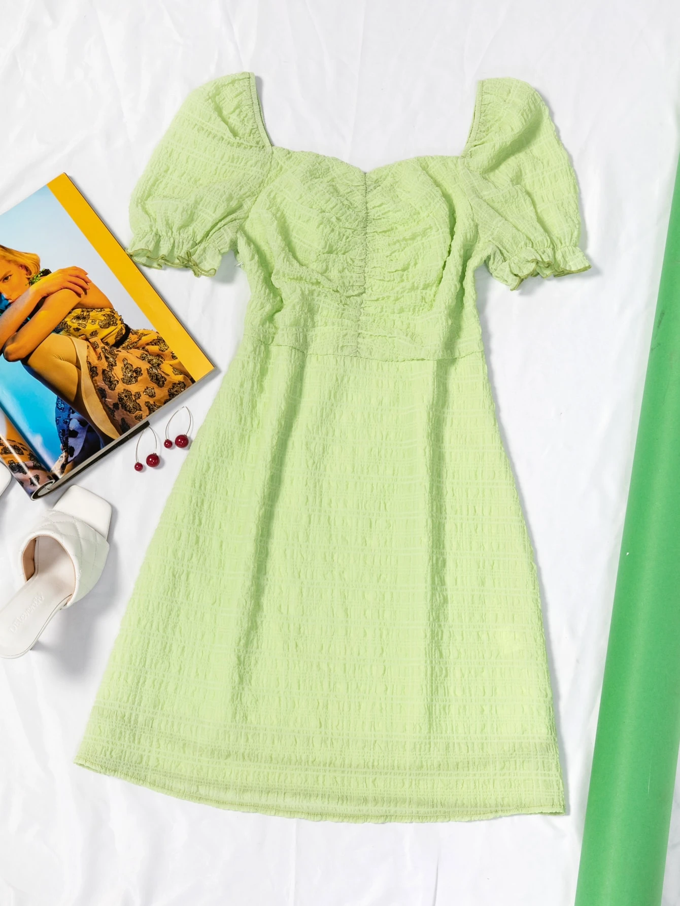 Vestido de cuello sweetheart con fruncido de textura unicolor