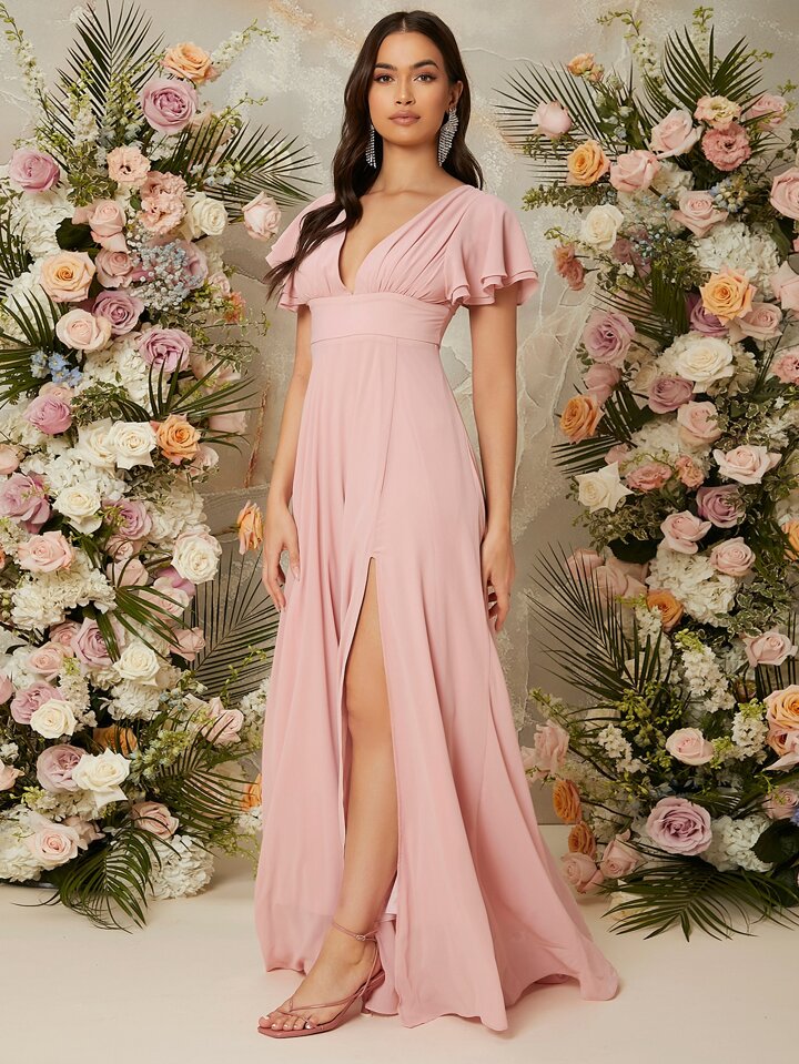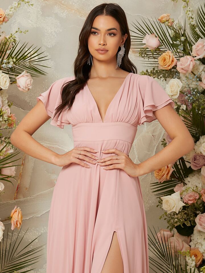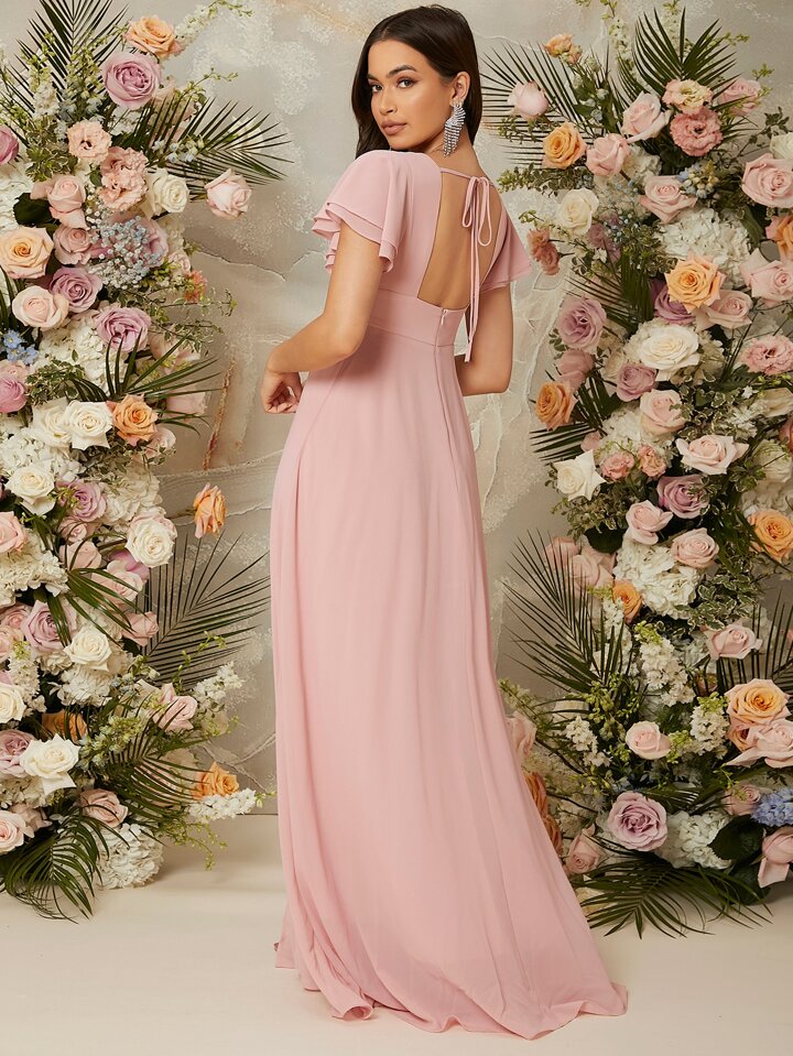 Vestido de muslo de mang acon volante de espalda con cordón unicolor