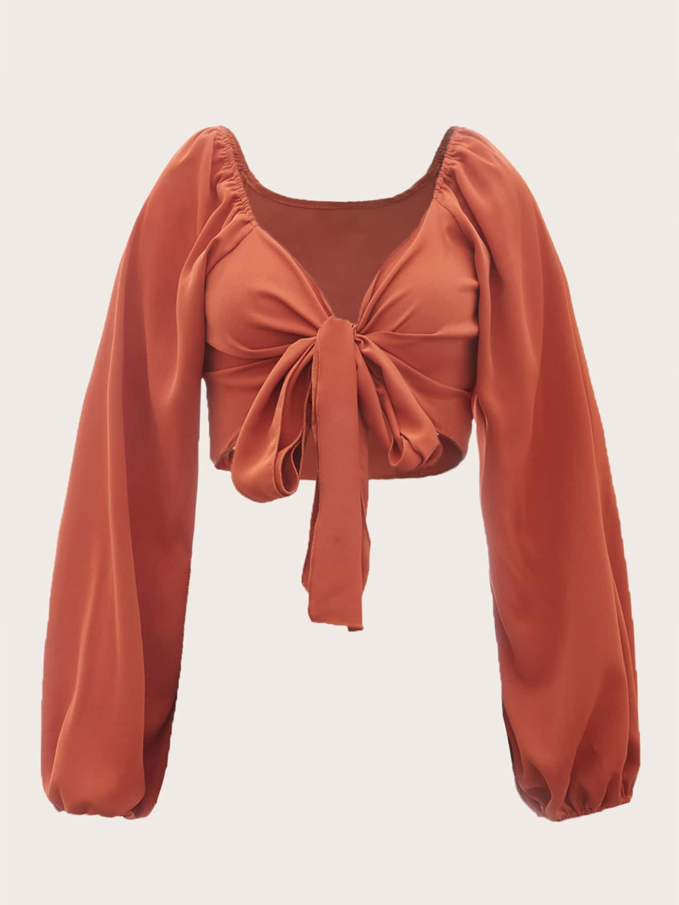 Top crop unicolor con cordón delantero
