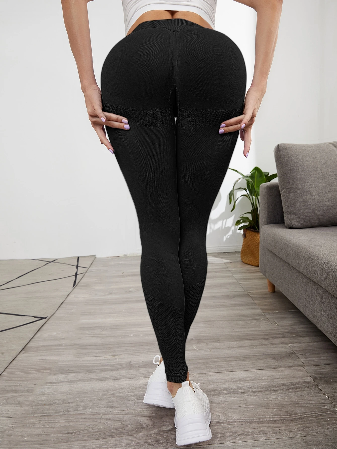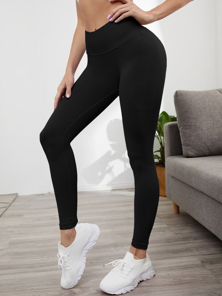 Leggings deportivos unicolor de cintura ancha sin costuras