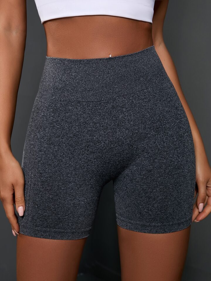 Shorts deportivos unicolor de cintura ancha