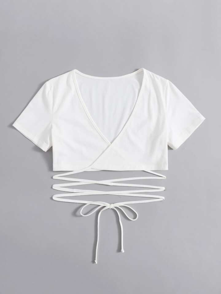 Tops de mujeres Cruzado Liso Casual