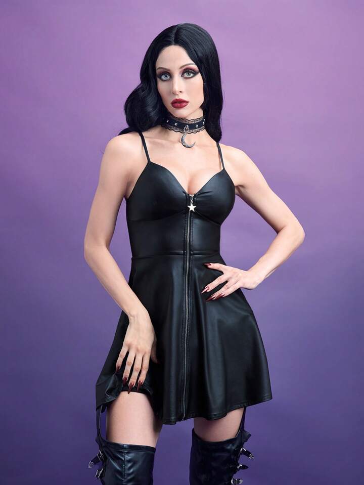 Vestido tipo camiseta con cremallera frontal sólida, para Año Nuevo