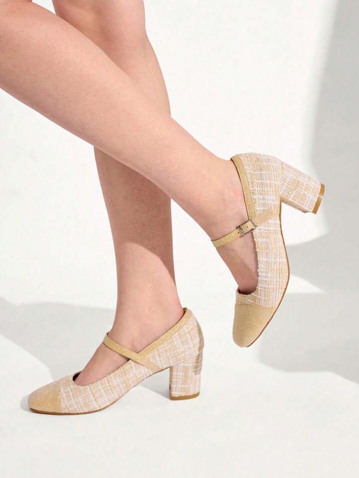 Zapatos de tacón alto de 7 cm con punta cuadrada, correa única y tela a cuadros, estilo francés elegante para el Día de San Valentín