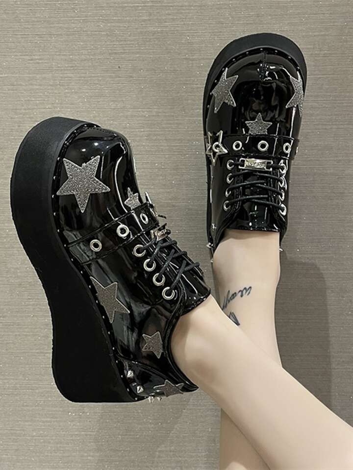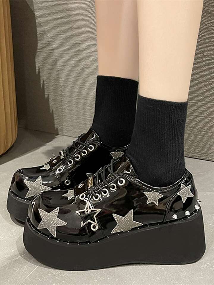 Zapatos oxford con patrón de estrella con cordón delantero cuña