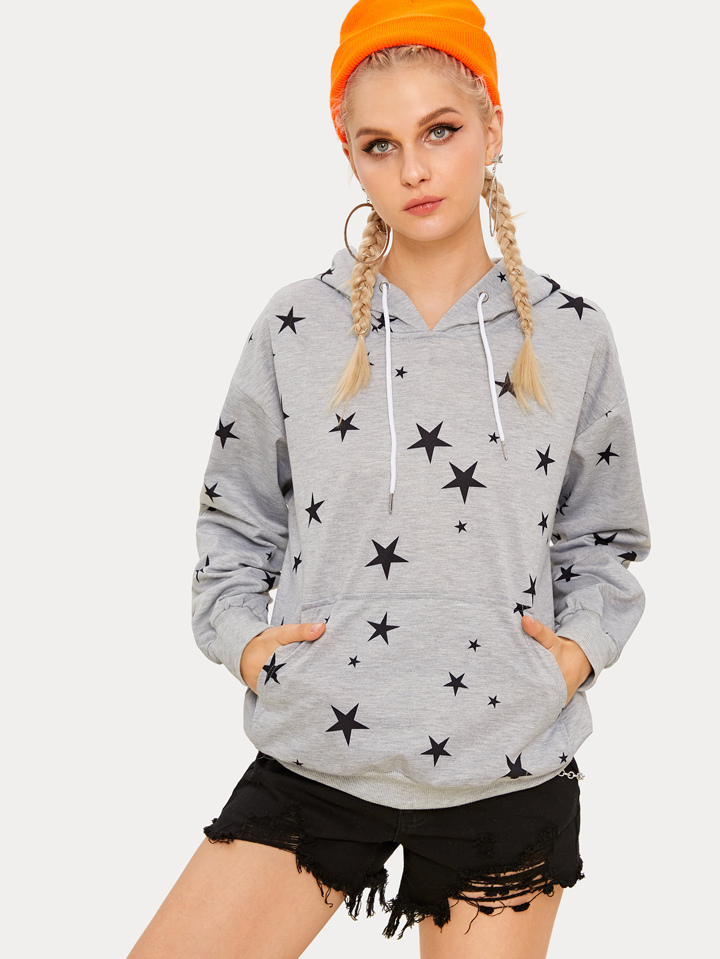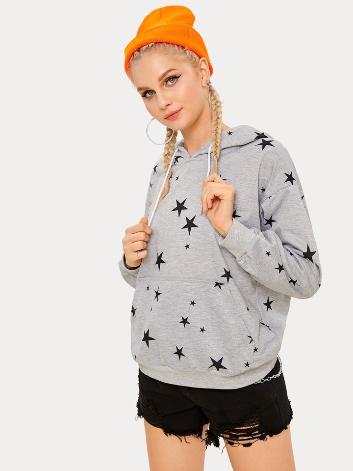 Capucha con cordón con bolsillo de canguro con estampado de estrella