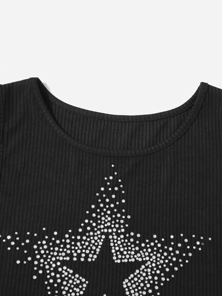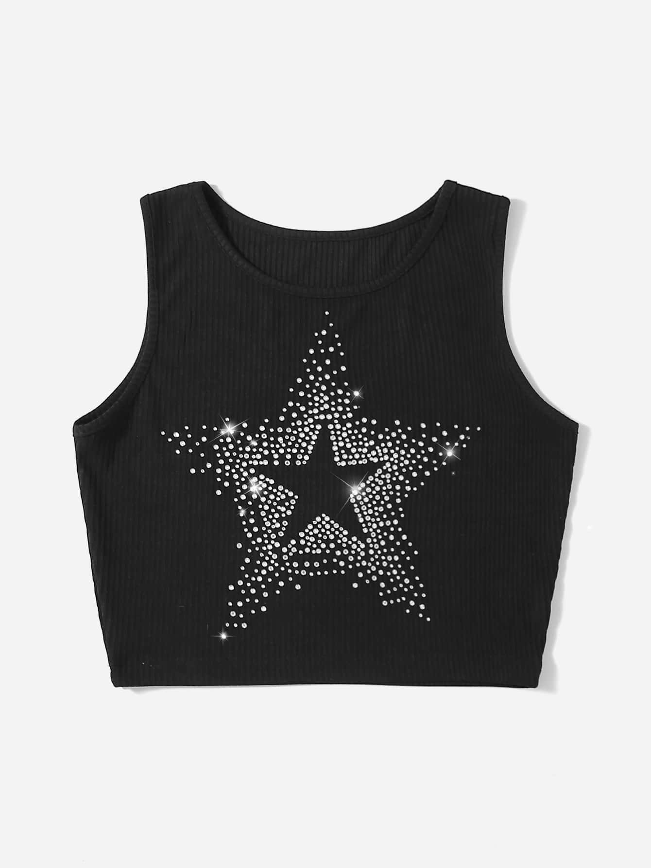 Top tank corto con estrella con diamante de imitación de canalé