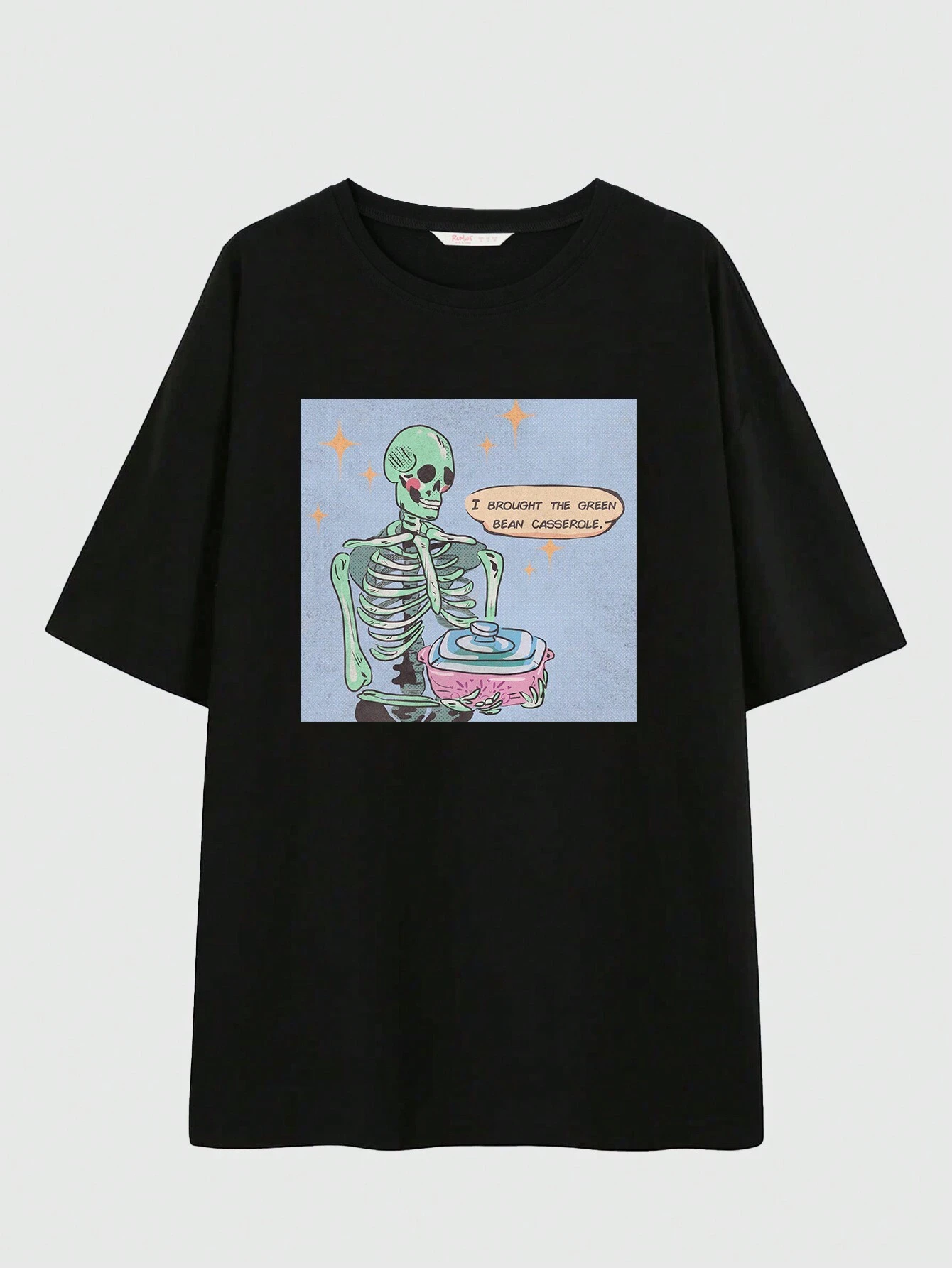 Stardust Salvage Camiseta de hombros caídos con slogan con estampado de cráneo