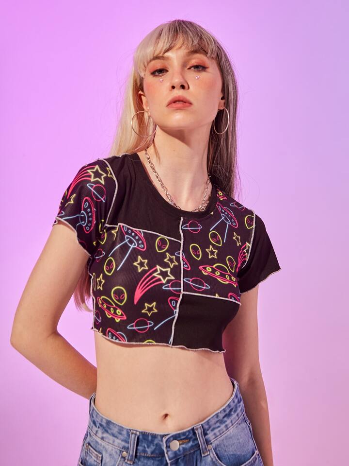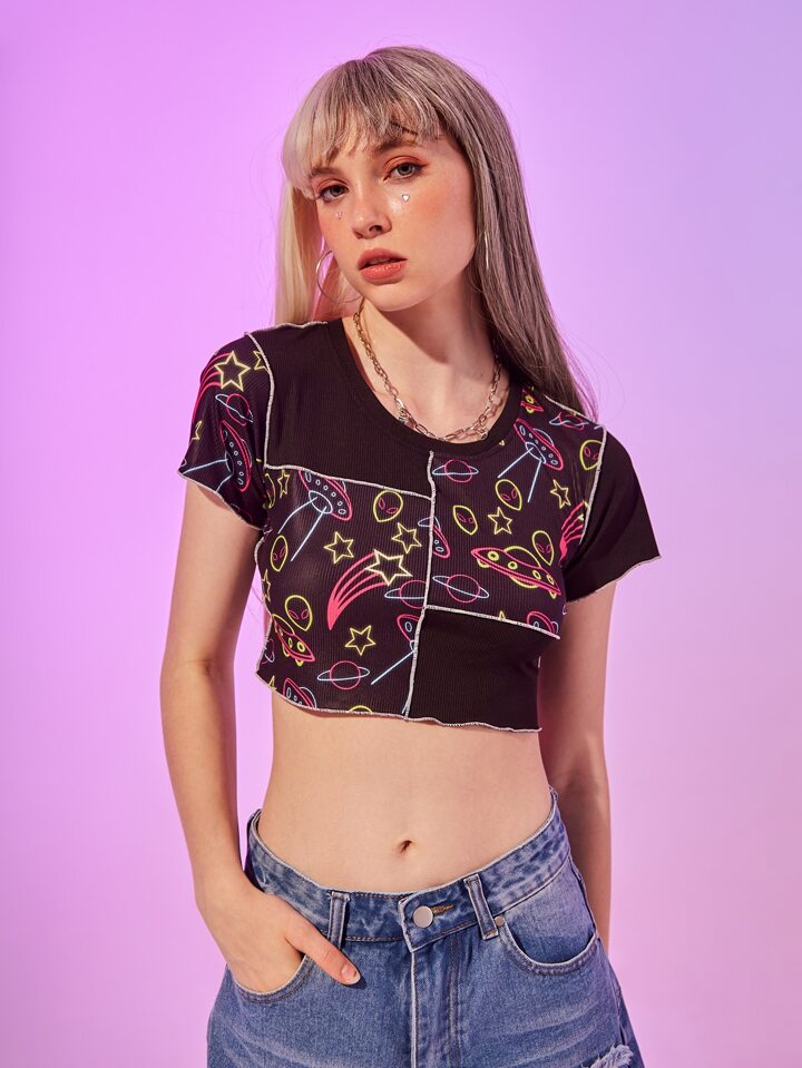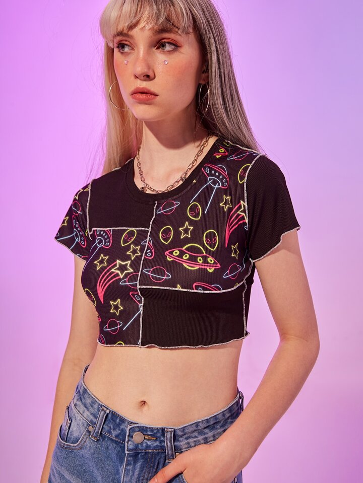 Camiseta corta con estampado de extraterrestre