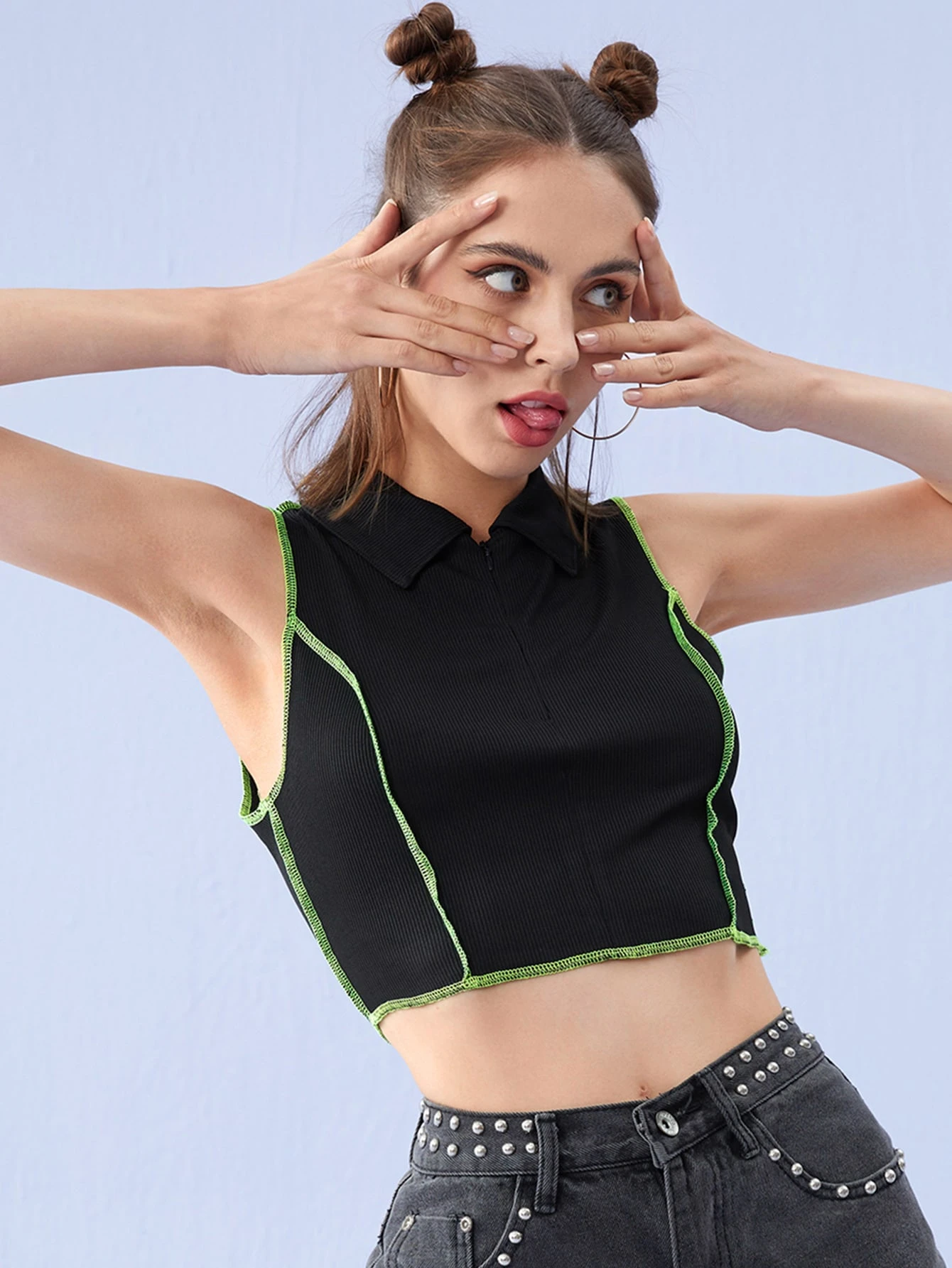 Top tank con cremallera media ribete con puntada