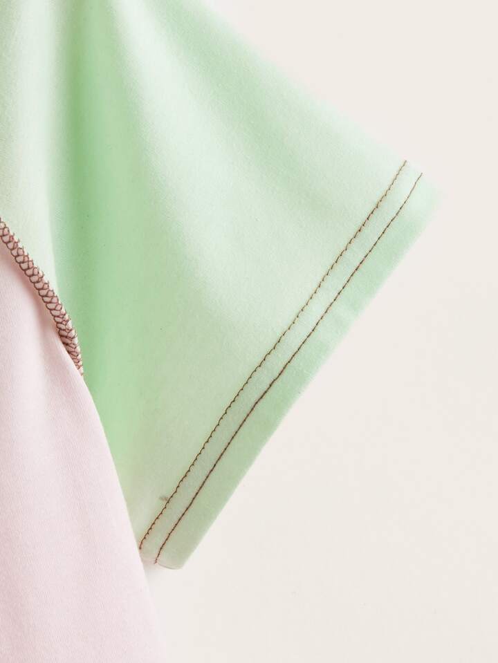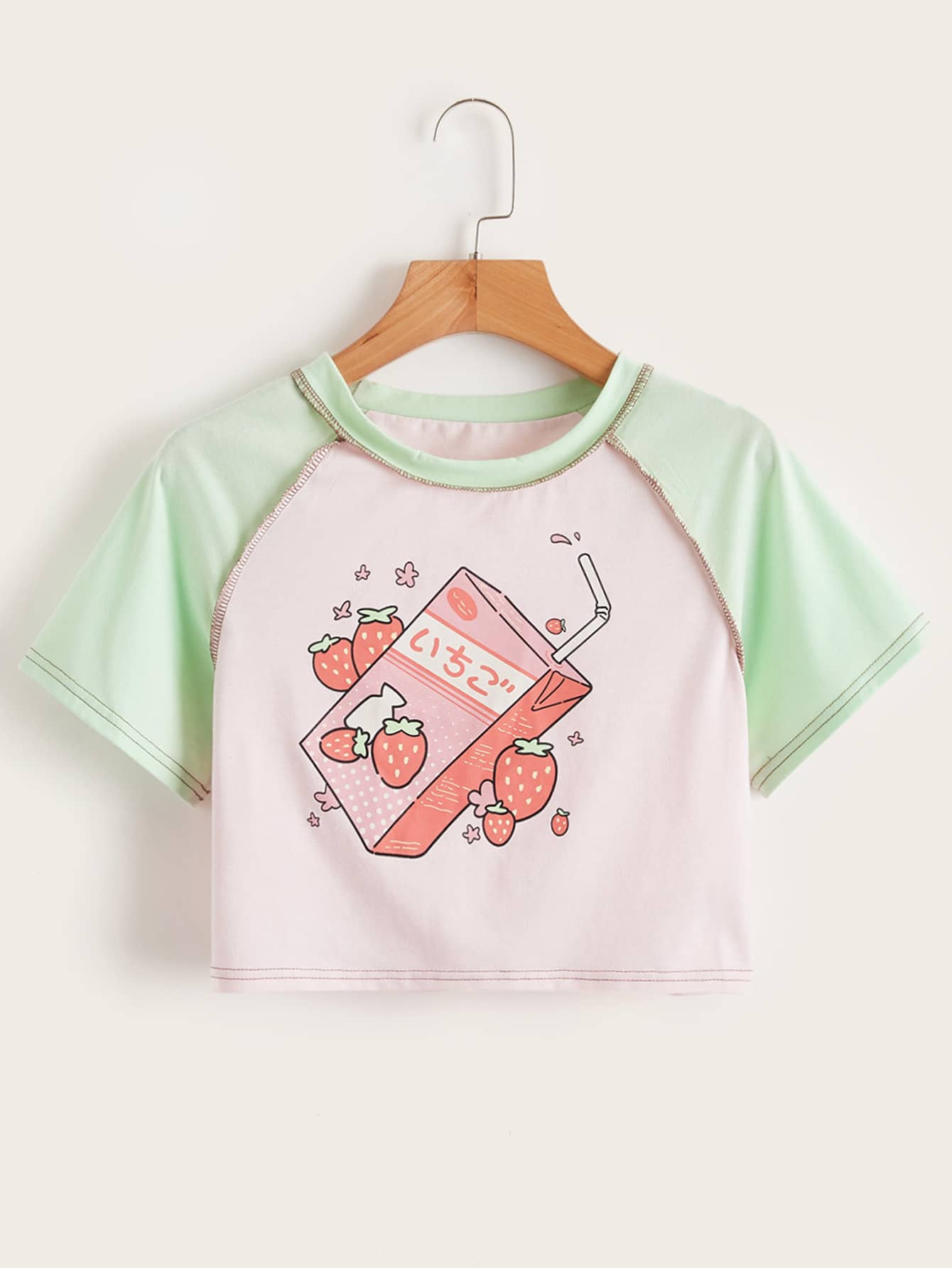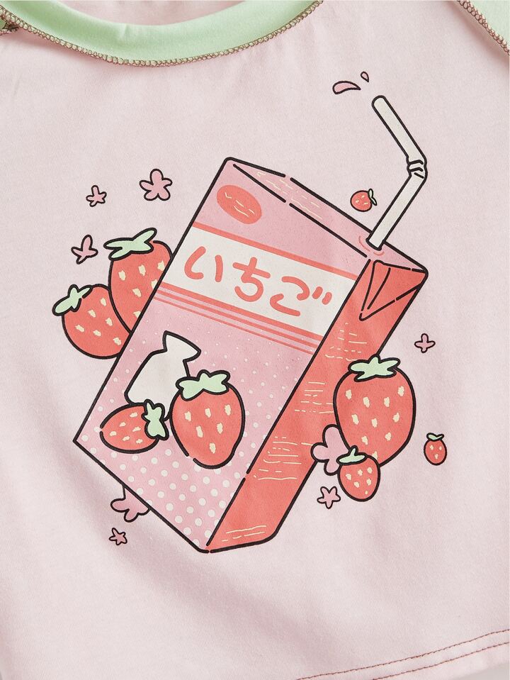 Camiseta ribete con puntada fresa leche con estampado de color combinado