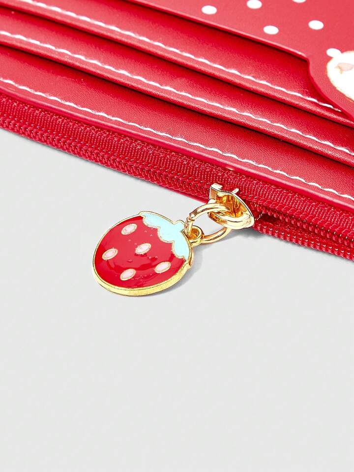 Monedero con cremallera y llavero con soporte para tarjeta de autobús con diseño de patrón de fresa de dibujos animados