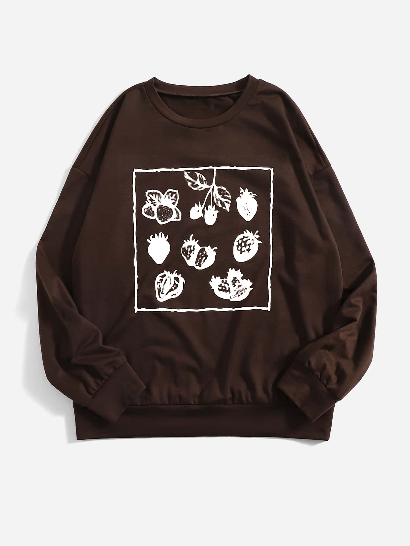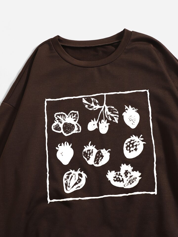 Sudadera con estampado de fresa de hombros caídos