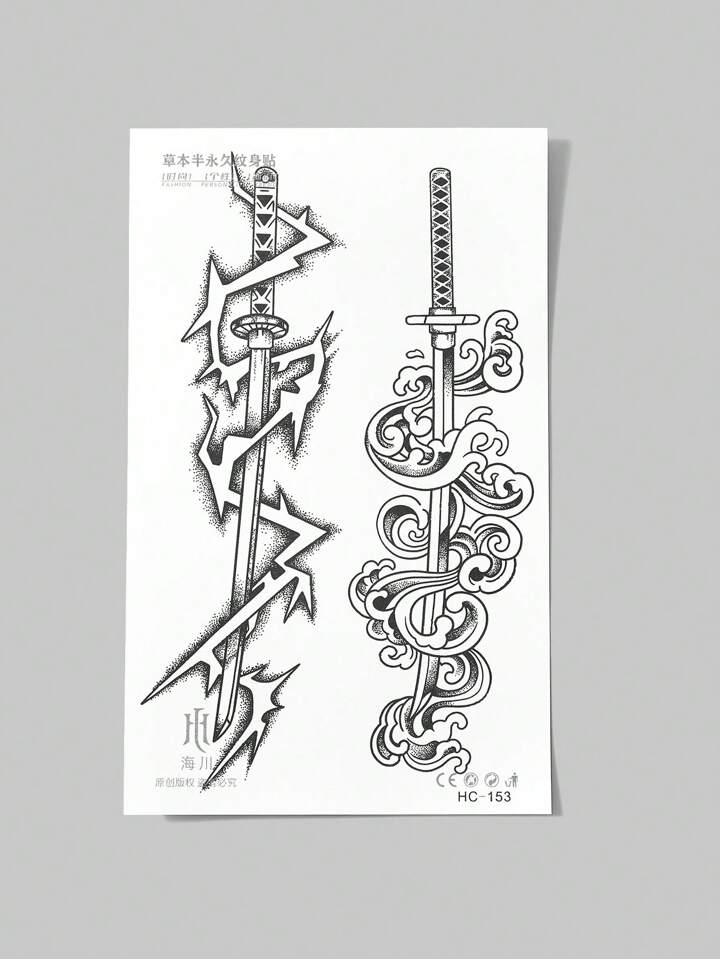 Street Life 1 Hoja Tatuaje Temporal De Moda Personalizado Con Patrón De Espada
