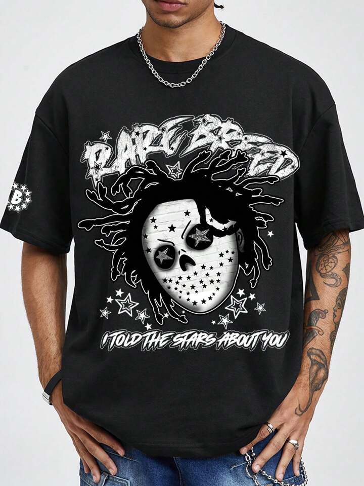 Street Life Camiseta de manga corta cuello redondo de estilo casual y holgada con diseño gráfico de retrato, cómoda camiseta deportiva, top de estilo callejero creativo para hombres, nuevo lanzamiento del verano 2025