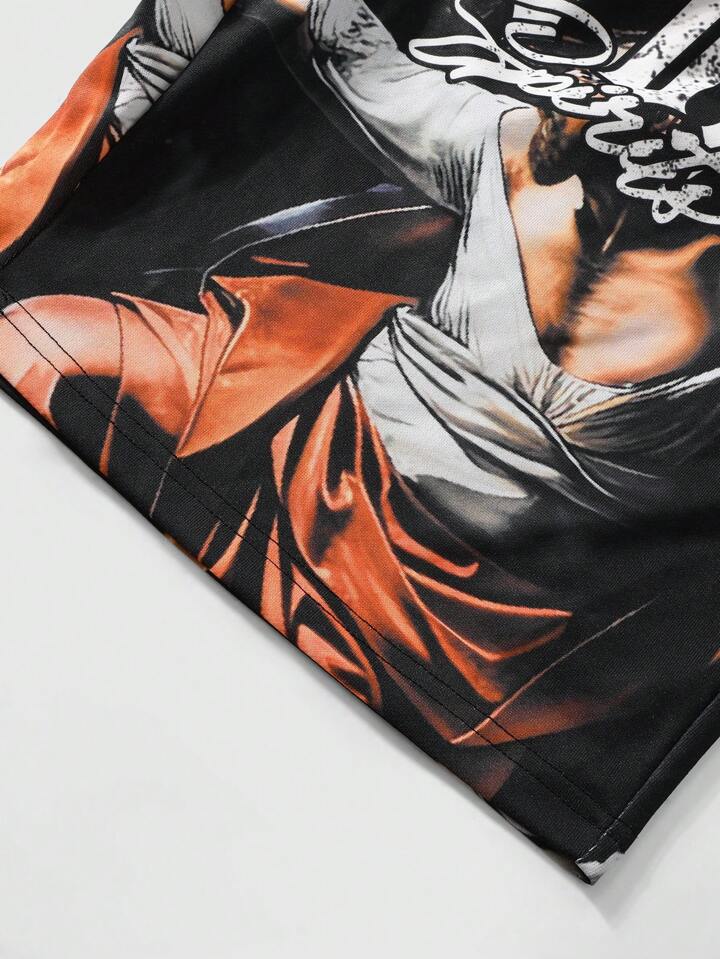 Street Life 2 piezas Conjunto de chándal casual para hombre con sudadera con capucha y estampado de letras, y pantalón corto con cordón