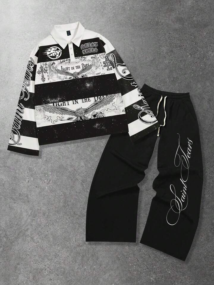 Street Life 2 piezas Conjunto de estilo casual de calle para hombre, Parte superior + Pantalón de chándal