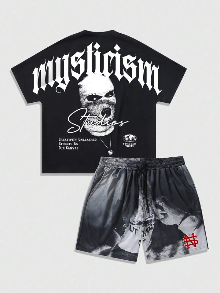 Street Life Set de 2 piezas de camiseta y pantalones cortos para hombre, adecuado para uso diario en primavera/verano