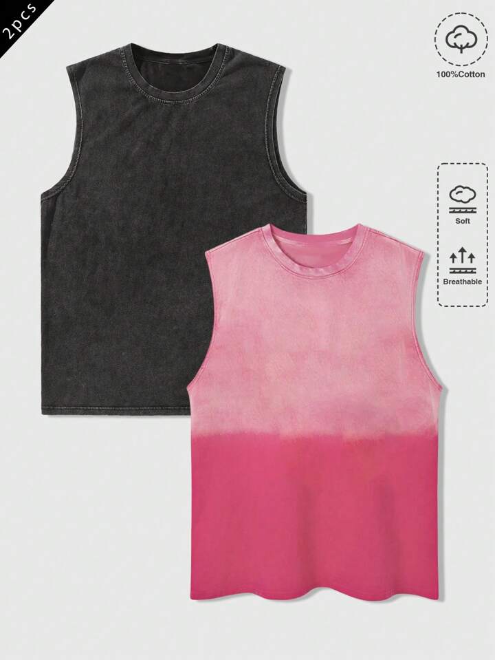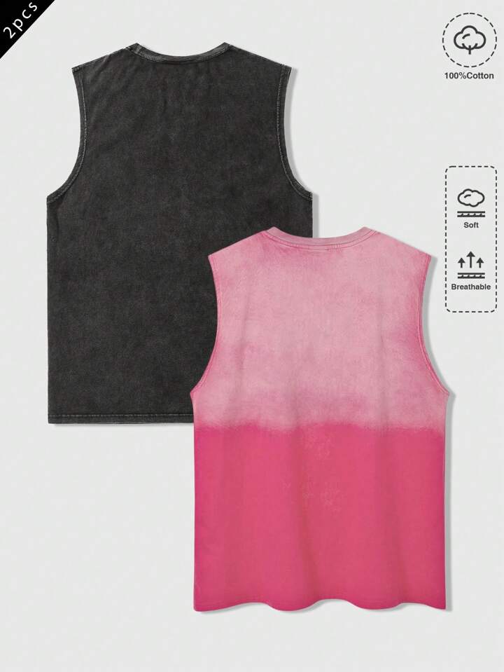 Street Life Set de 2 camisetas de tirantes con diseño gráfico de estampado de leopardo lavado con ácido para hombre, de estilo casual