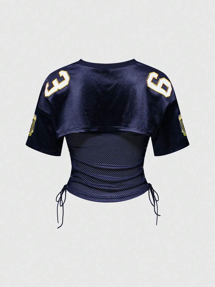 Street Life Set de 2 piezas: Top corto deportivo casual de verano tipo jersey + Top bandeau ajustado con nudo