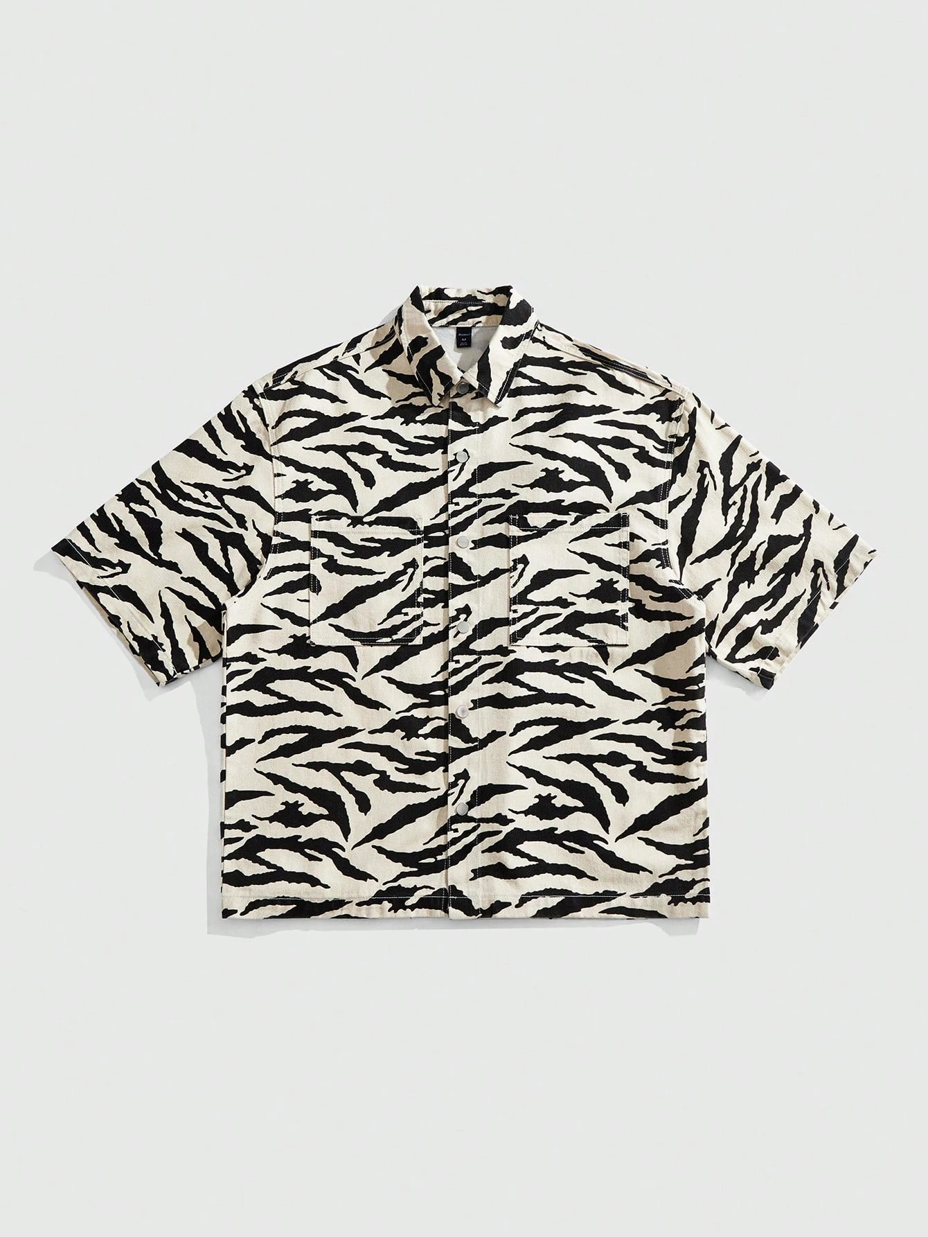 Street Life Camisa de mezclilla de corte recto con estampado de cebra para hombre, de verano
