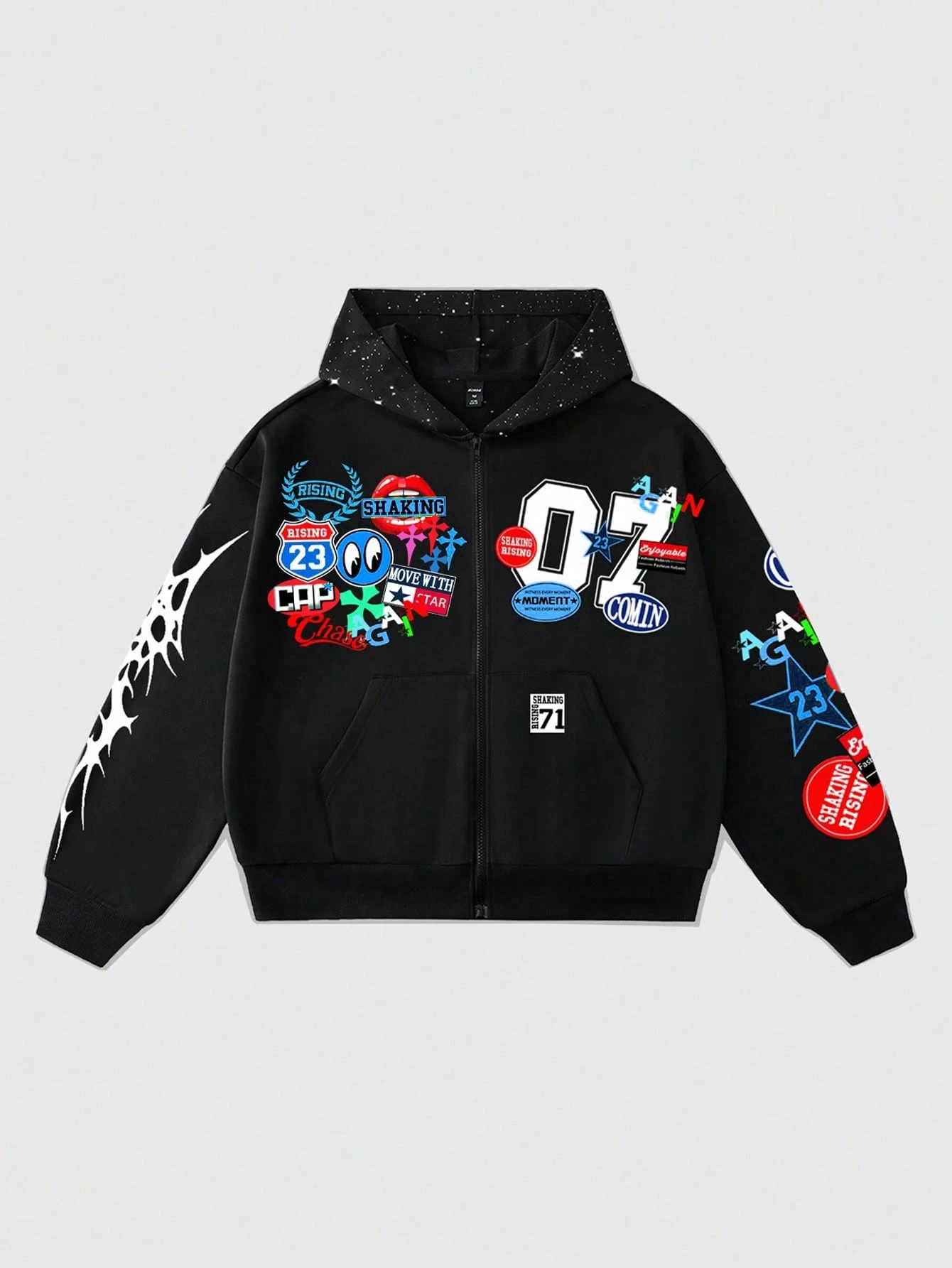Street Life Sudadera holgada y corta para niño con decoración de lentejuelas brillantes, estilo urbano