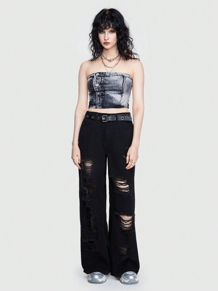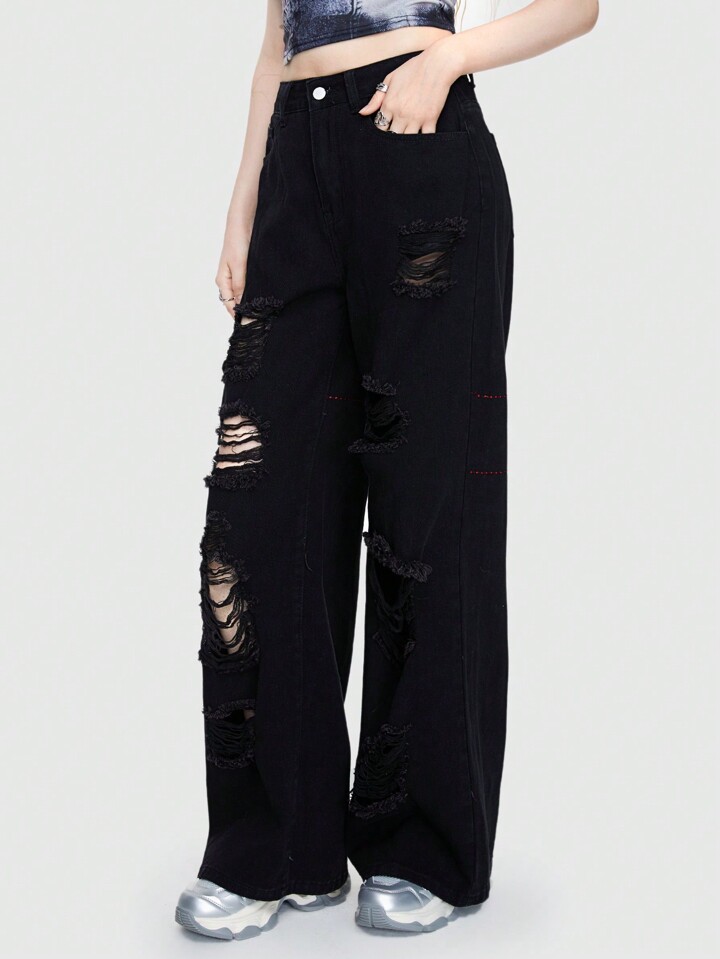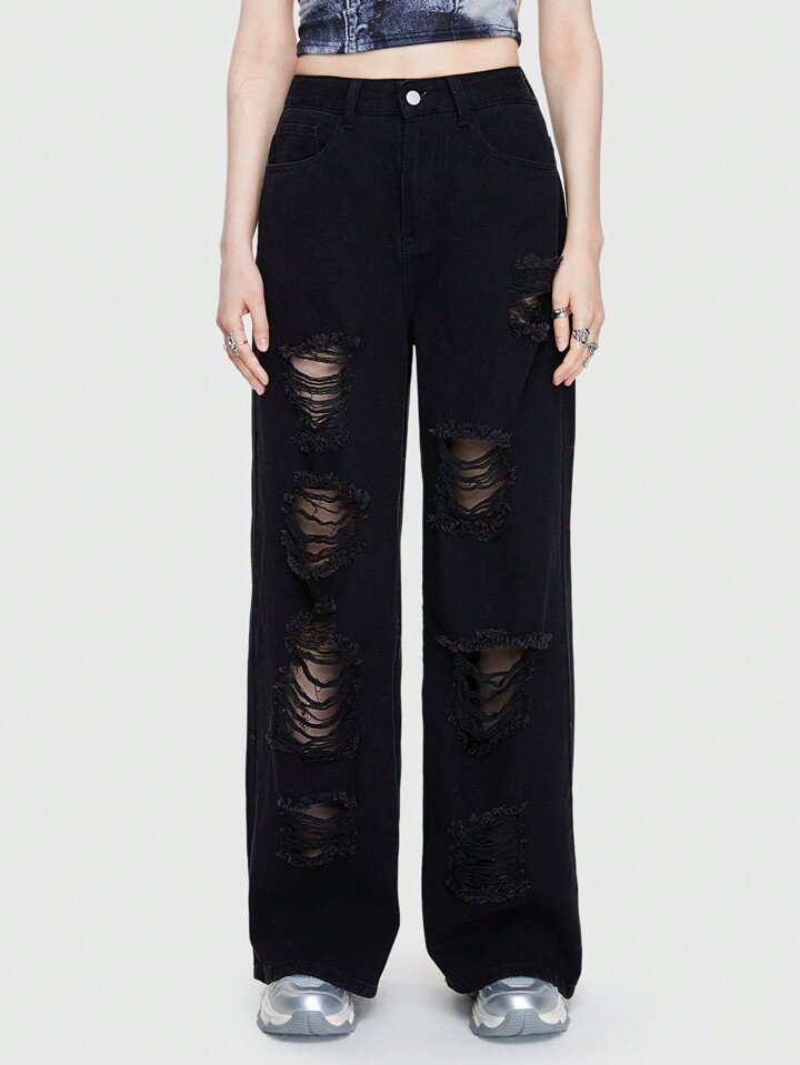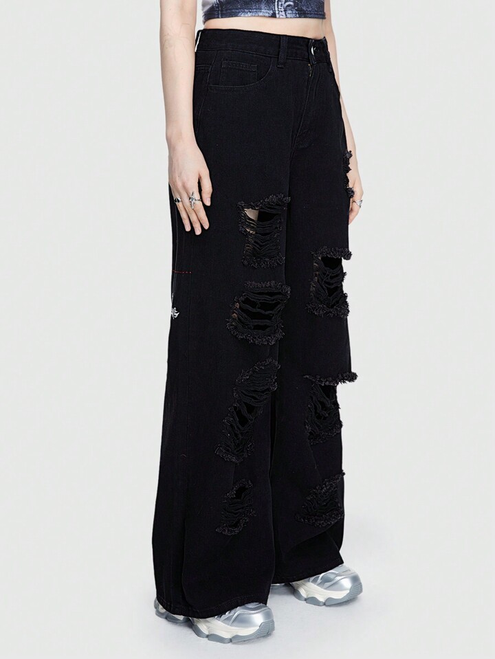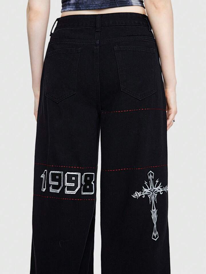 Street Life Vaqueros Denim Casuales Lavados Y Rasgados Con Estilo De Calle Y Bordado De Cruz 1998