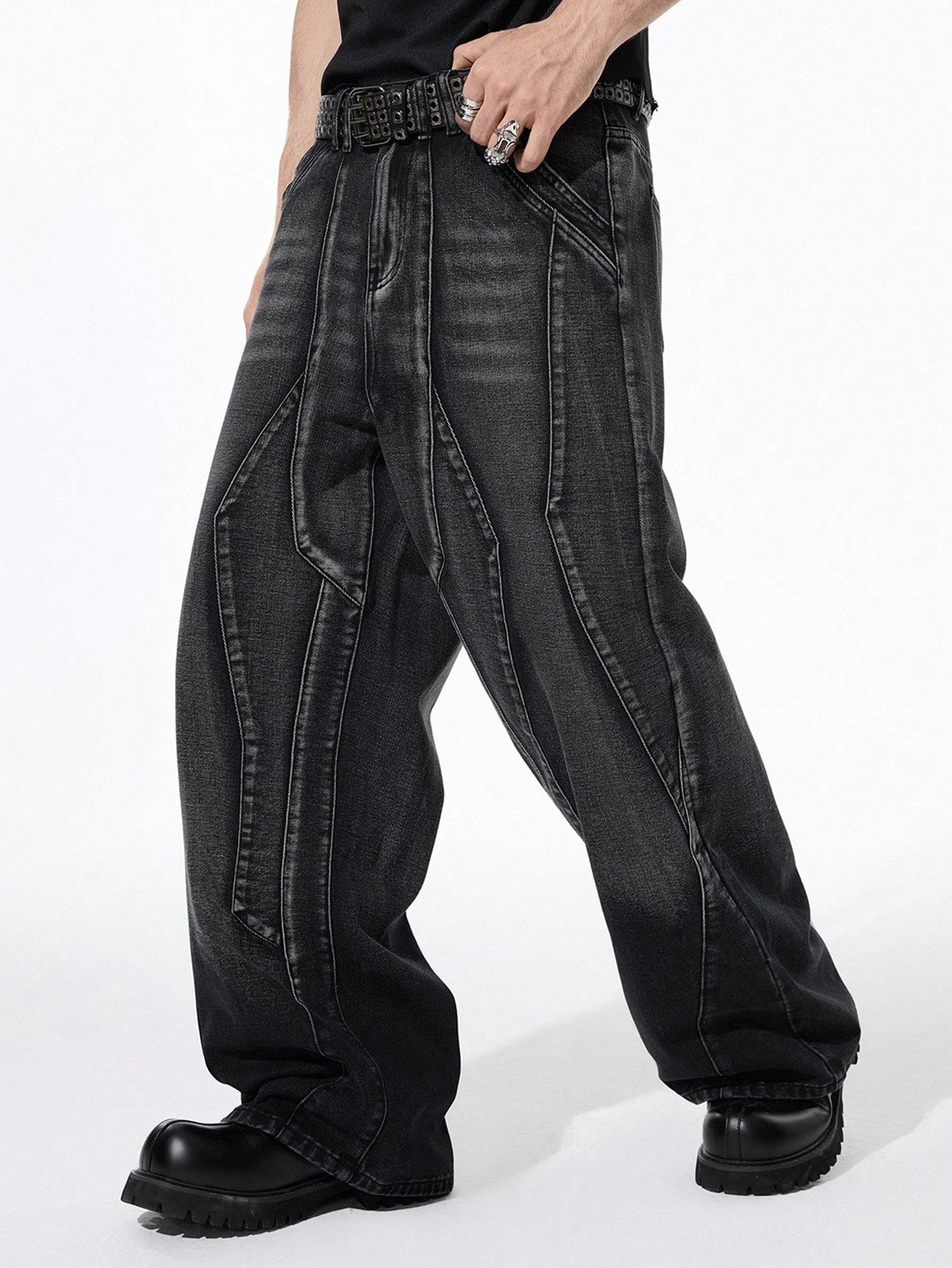 Street Life Jeans casuales y versátiles de pierna recta y ancha con bolsillos con botones para hombres