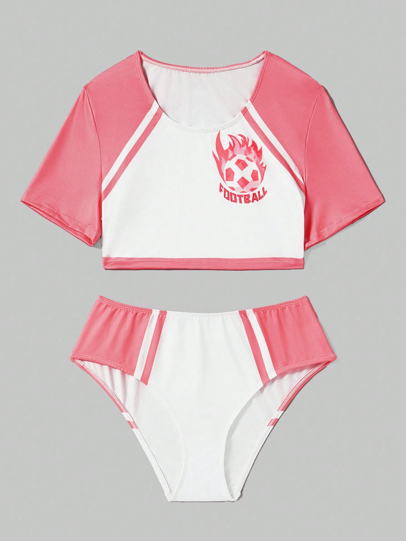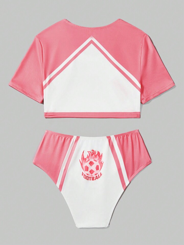 Street Life Conjunto De Sujetador Y Bragas Deportivas De Impresión Colorida De Fútbol Y Letras Para Ocio Atlético