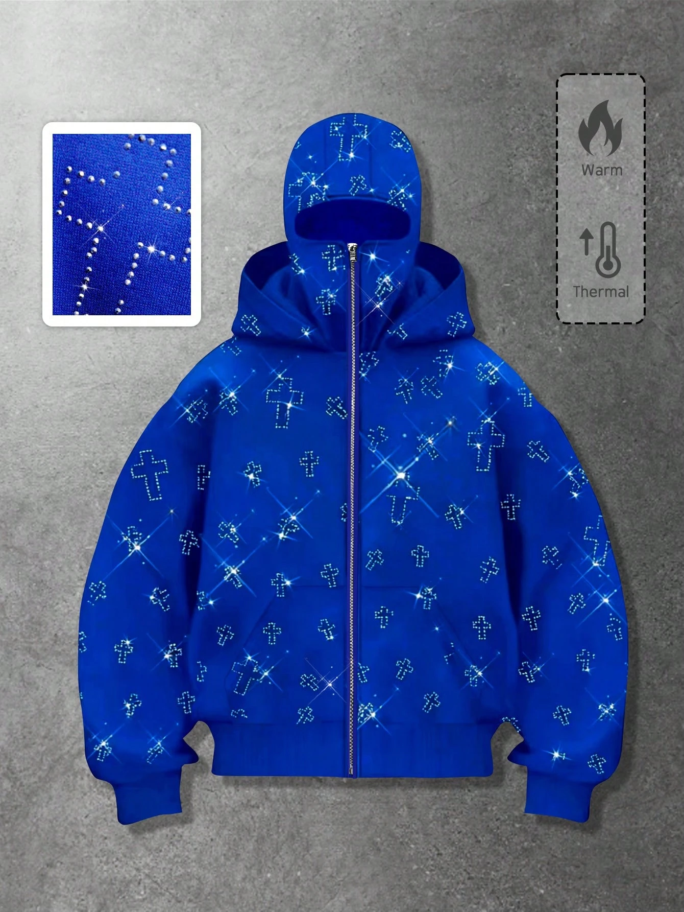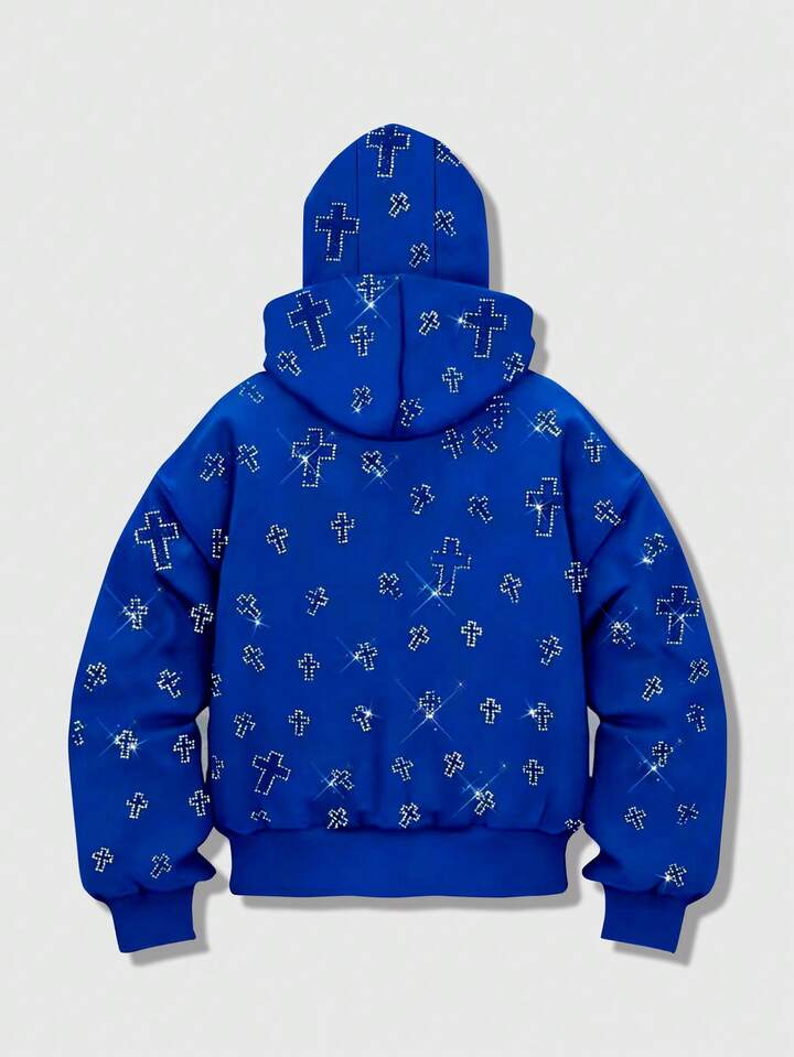 Street Life Sudadera con capucha con bolsillos y adornos de strass con cierre de cremallera, sudadera con capucha de moda para hombres