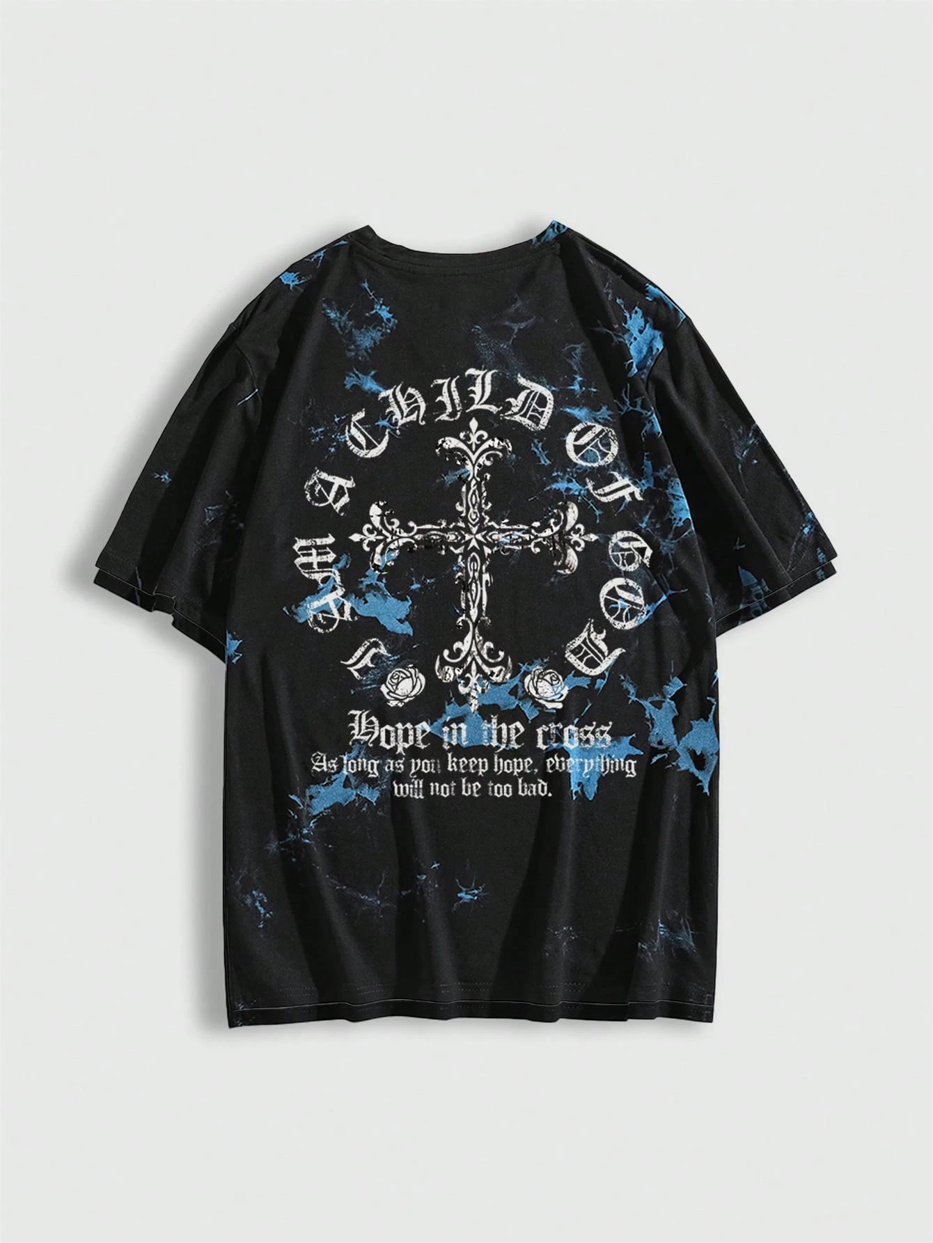 Street Life Camiseta con estampado de cruz y lema para hombre, adecuada para el uso diario, primavera/verano