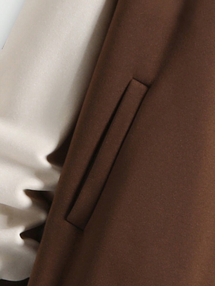 Street Life Hombres Cazadora de universidad con estampado de oso y letra de dos tonos sin capucha