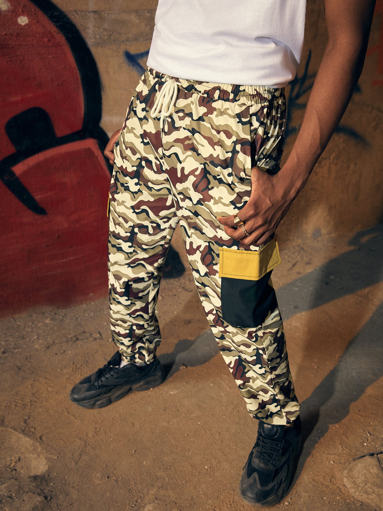 Street Life Hombres Pantalones de camuflaje con bolsillo con solapa