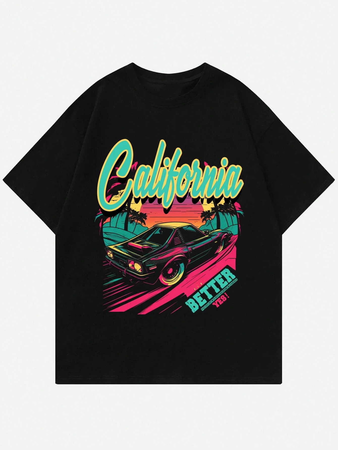 Street Life Hombres Camiseta con estampado de coche y letra