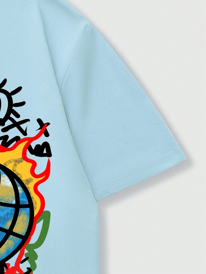 Street Life Hombres Camiseta con estampado de dibujos animados y letra