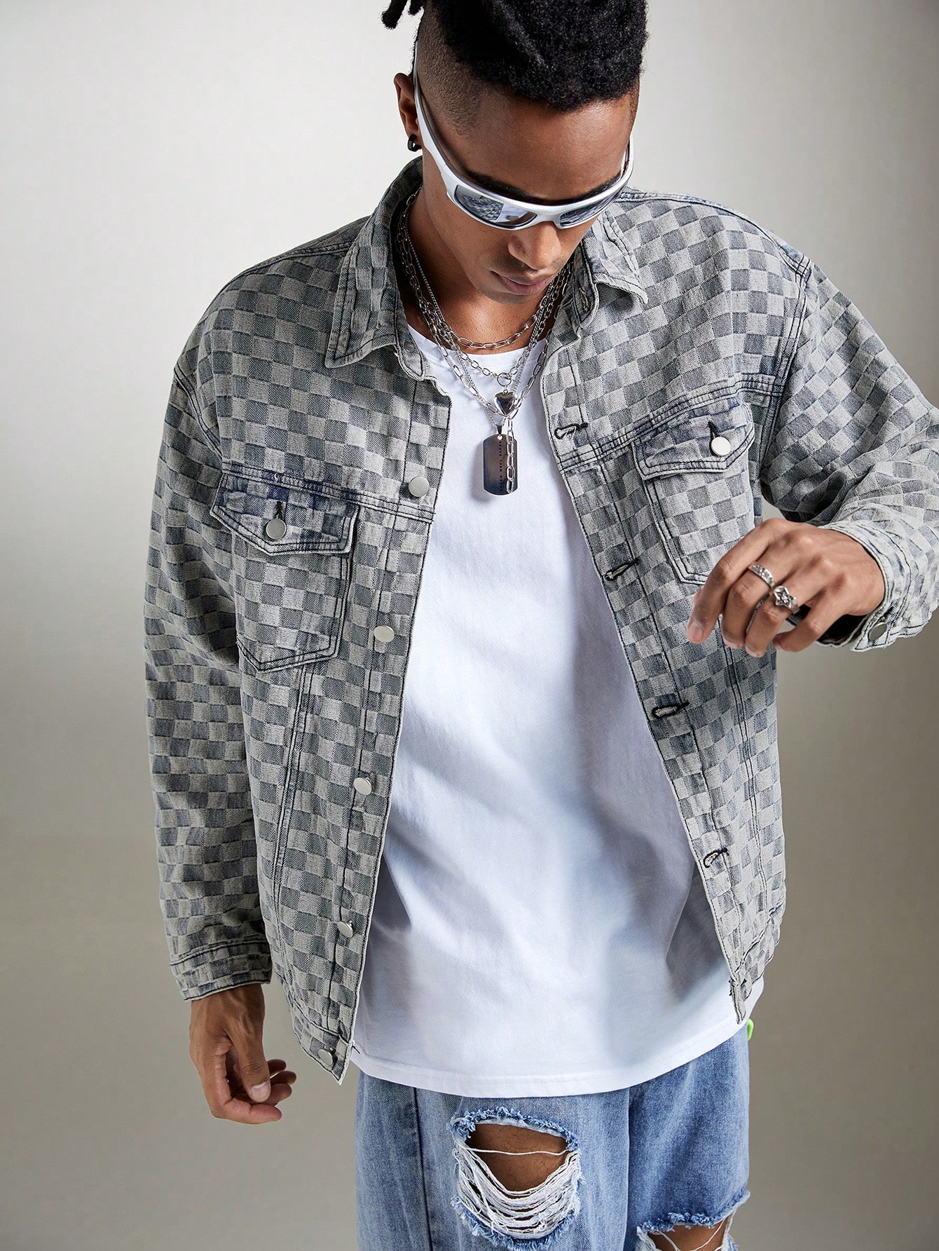 Street Life Hombres Cazadora mezclilla de cuadros con estampado con bolsillo con solapa