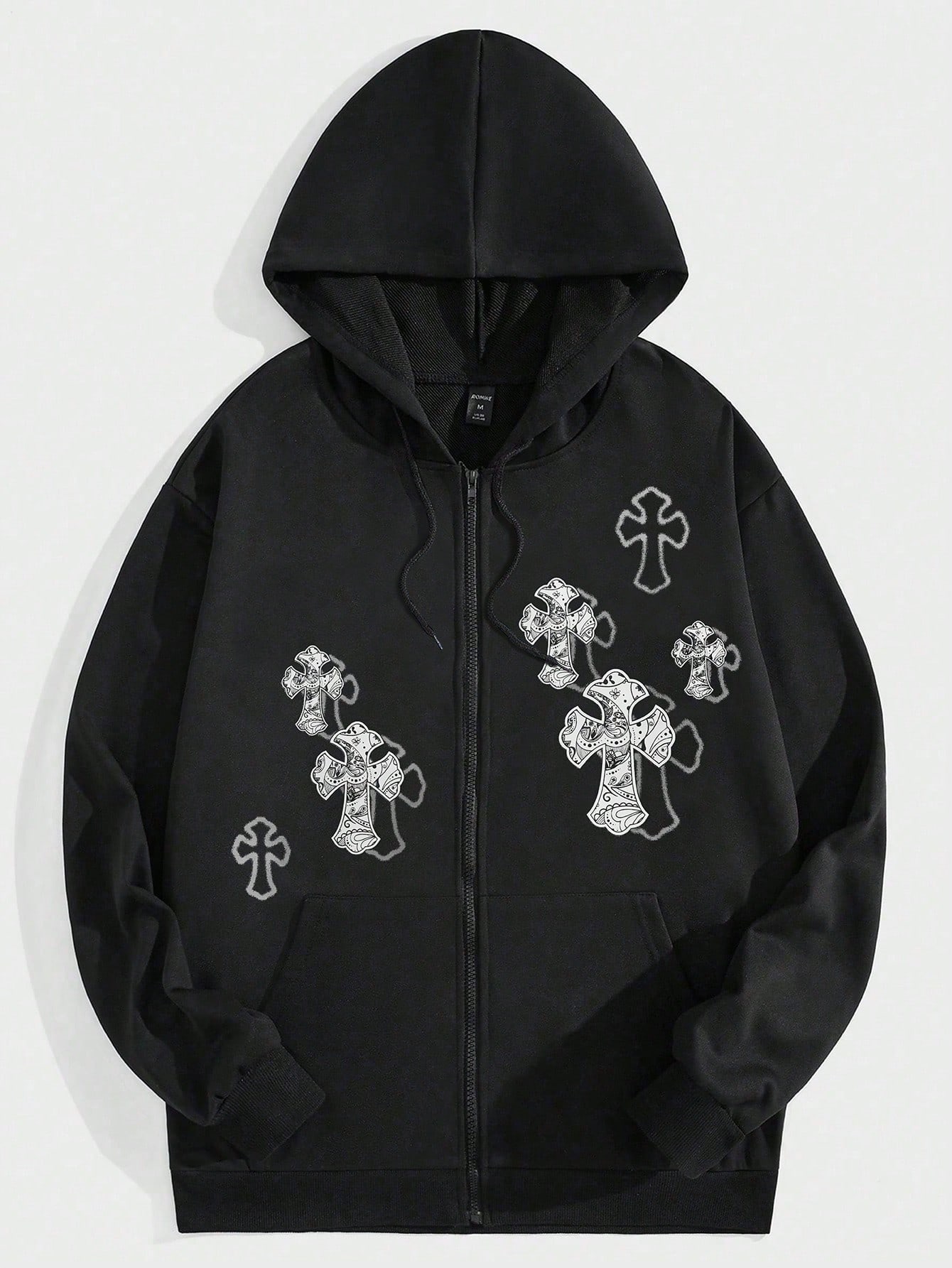 Street Life Hombres Capucha cruzado con estampado con cremallera con cordón con forro térmico