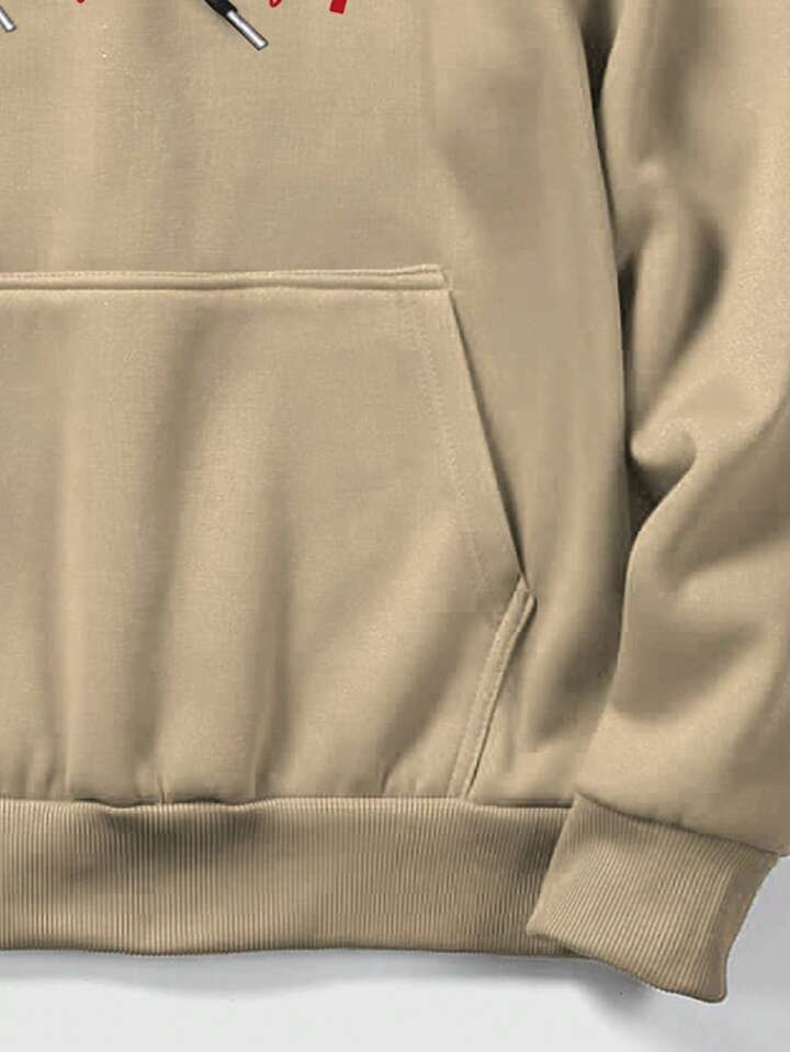 Street Life Hombres Capucha térmica con estampado de figura y slogan de manga raglán con cordón