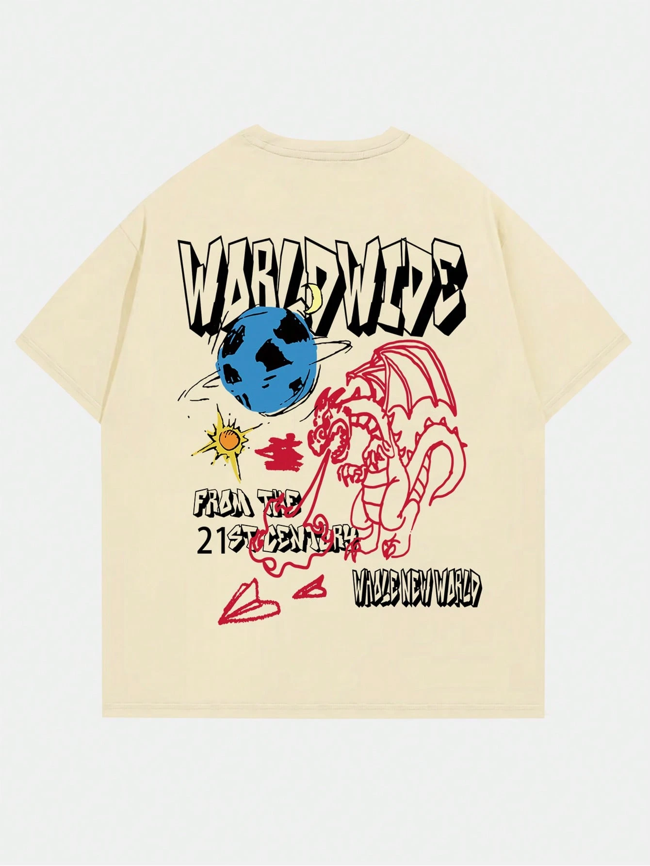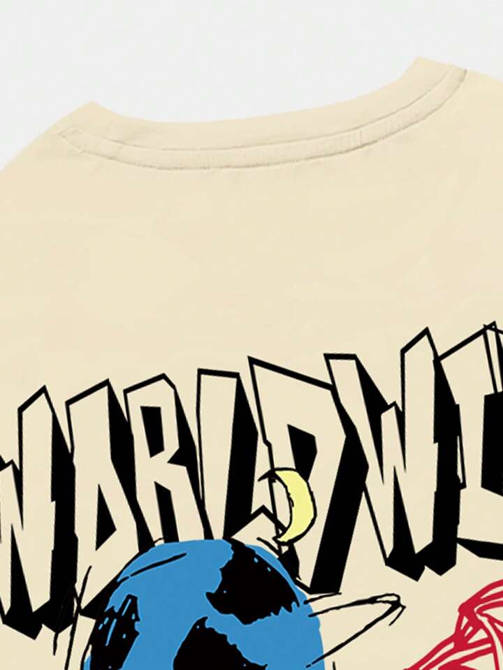 Street Life Hombres Camiseta con estampado de letra y dibujos animados