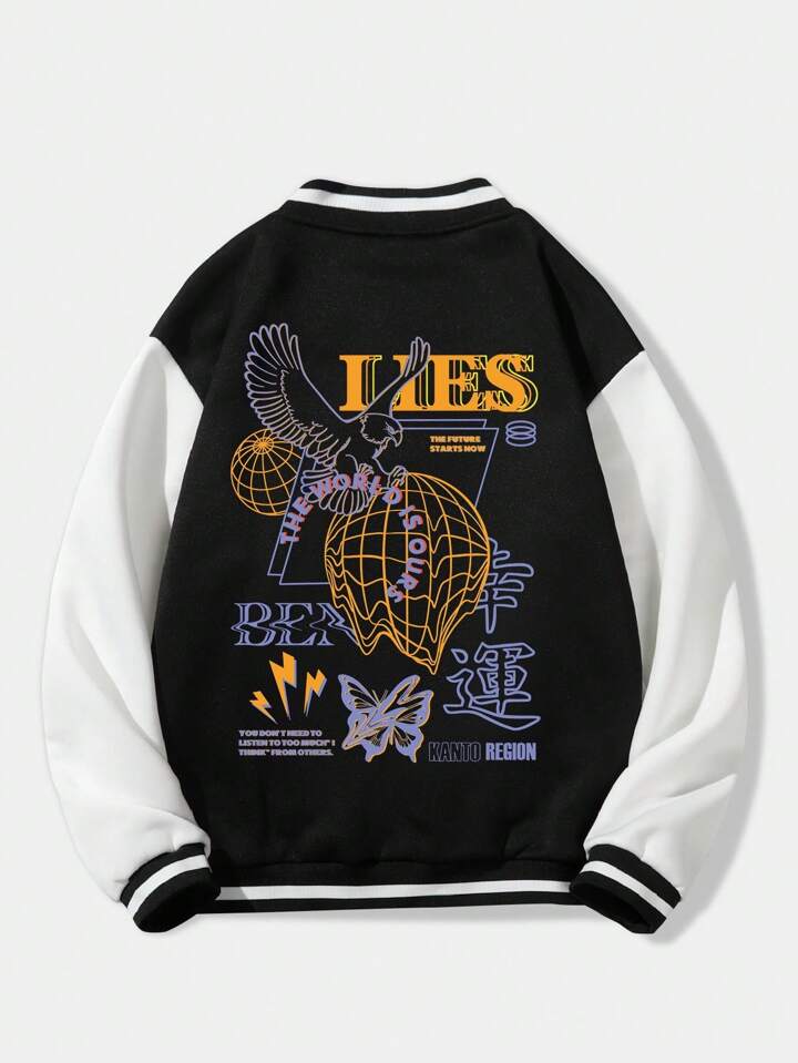 Street Life Hombres Cazadora de universidad con letra & con estampado de águila ribete de rayas térmico