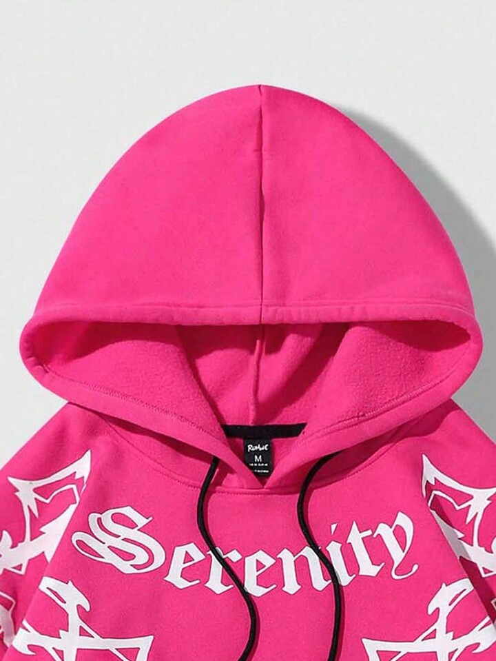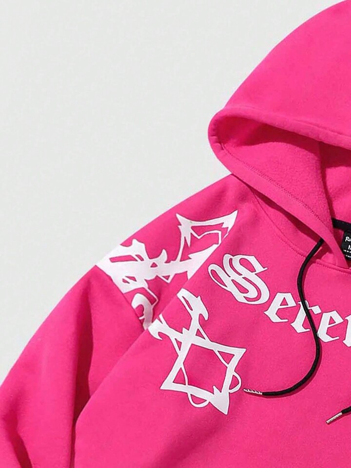 Street Life Hombres Capucha con estampado de letra de manga raglán con cordón