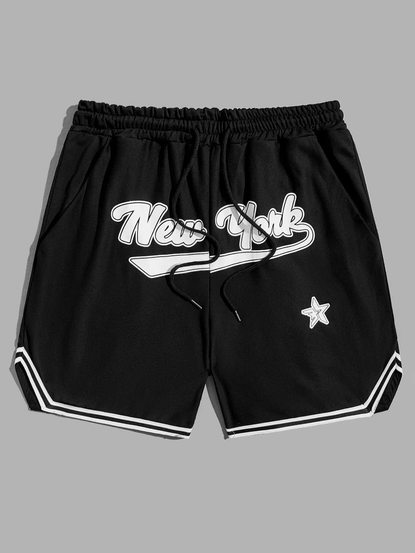 Street Life Hombres Shorts con estampado de letra ribete de rayas de cintura con cordón
