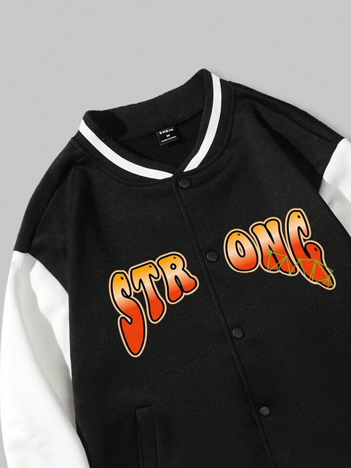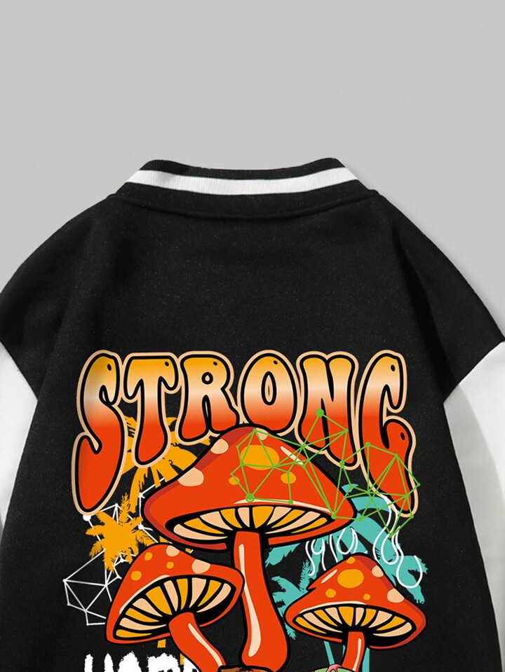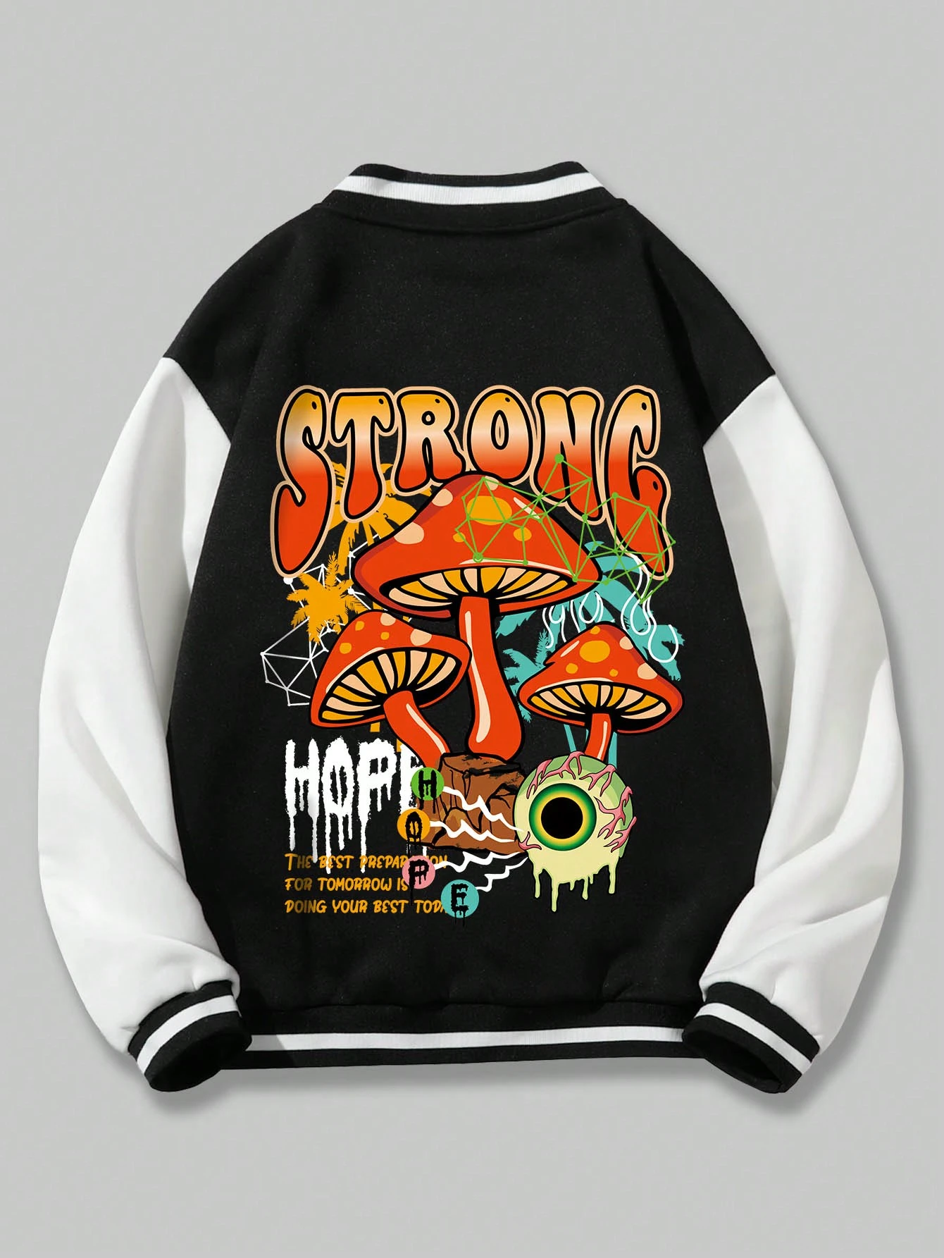 Street Life Hombres Cazadora de universidad con estampado de seta ribete de rayas de hombros caídos