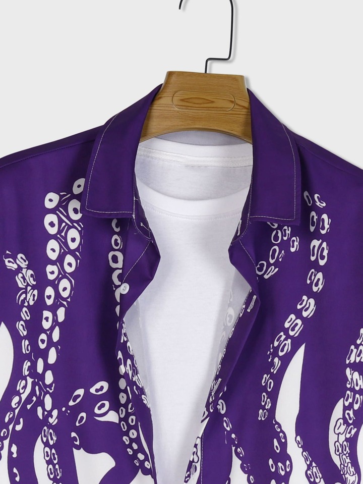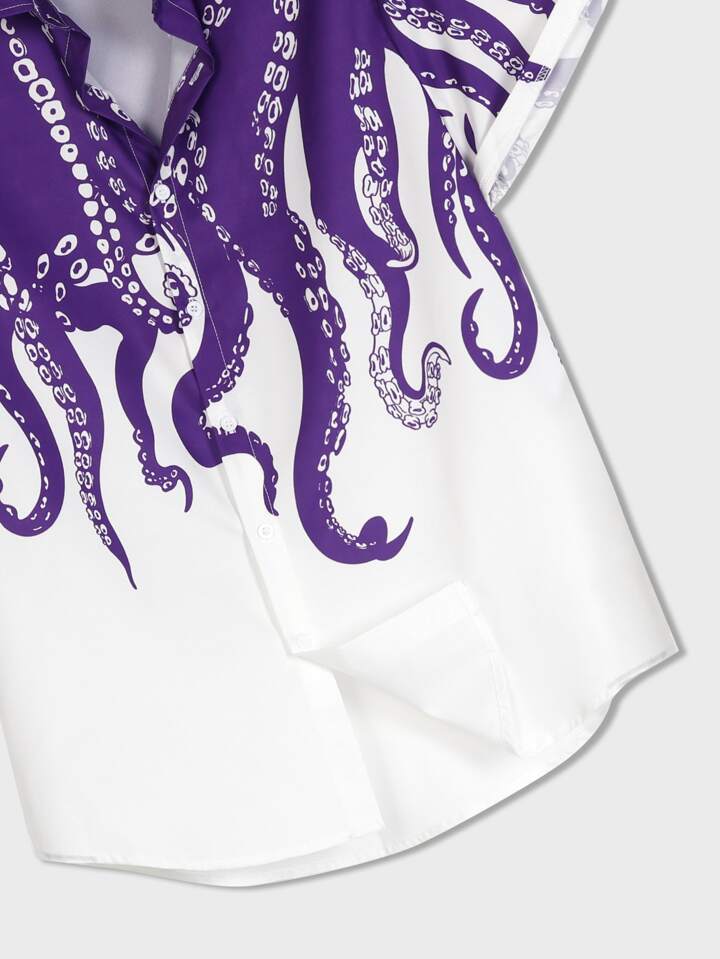 Street Life Hombres Camisa de pulpo con estampado de mano