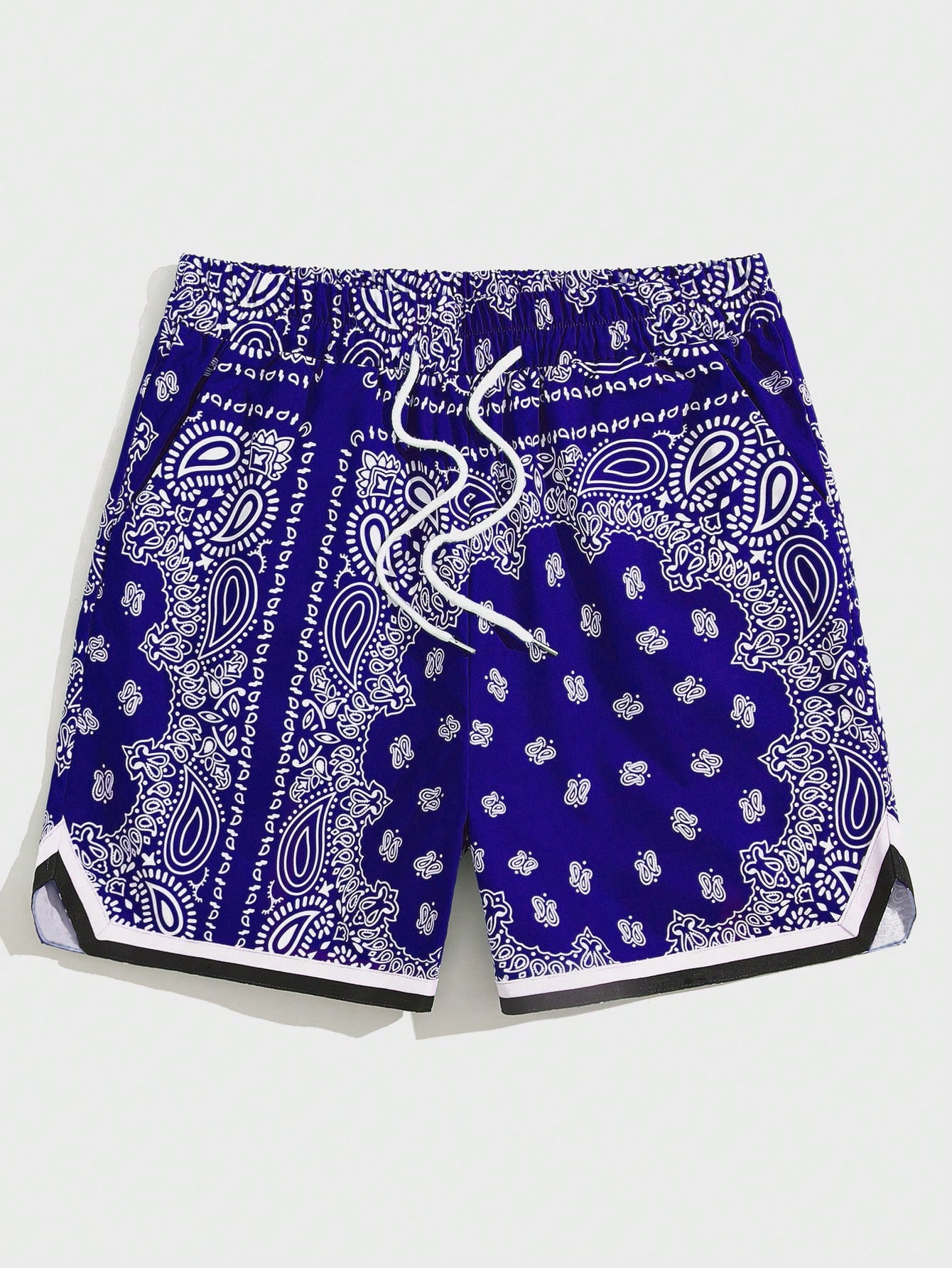 Street Life Hombres Shorts con estampado de paisley de cintura con cordón