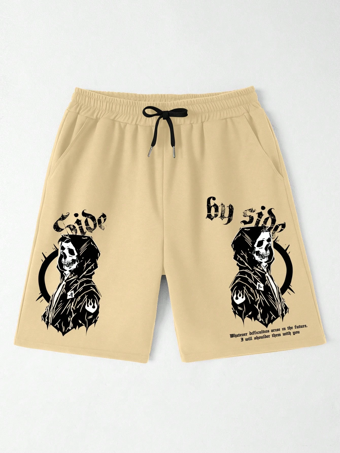 Street Life Hombres Shorts esqueleto & con estampado de letra de cintura con cordón