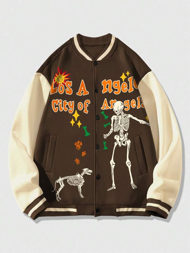 Street Life Hombres Cazadora de universidad esqueleto & con estampado de letra de dos tonos